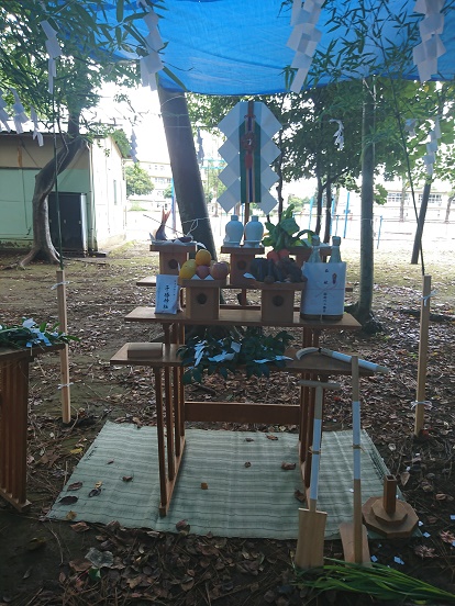樹木を利用したブルーシートの屋根をつくってくれて、滞りなくお祭りは