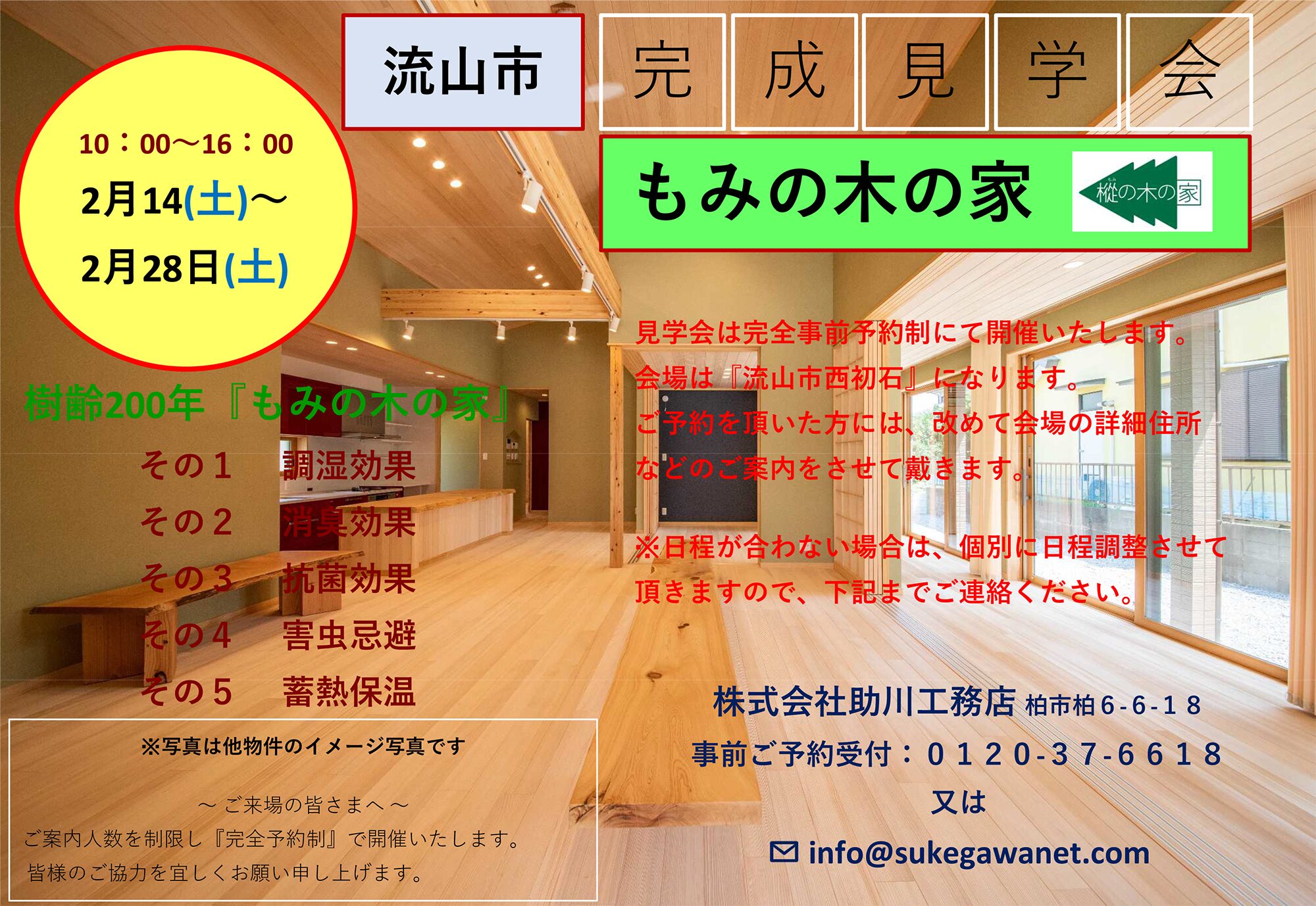 【2/14~2/28まで】流山市でもみの木の家の完成見学会を開催!