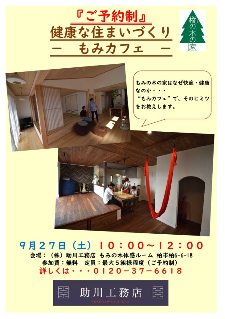 【9月27日(土)】健康な住まいづくりのおはなし”もみカフェ”を開催!